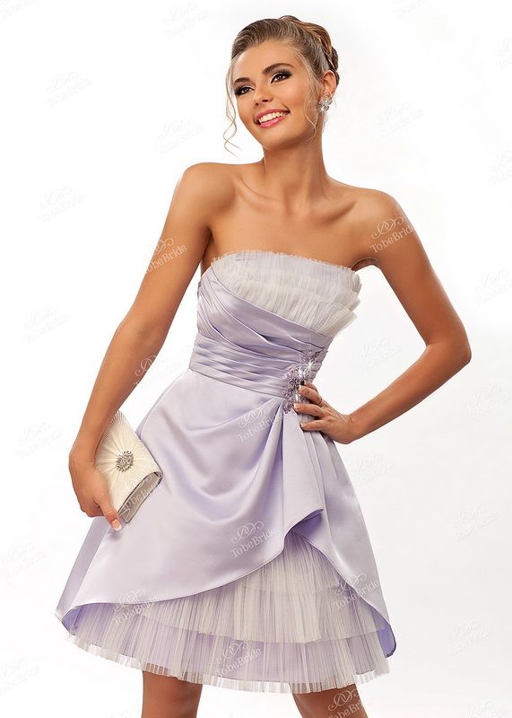 Невероятно красивое и нежное вечернее платье изысканного светло-сиреневого цвета. Модель выполнена из атласа в сочетании с воздушным фатином – струящихся легких тканей, которые в сочетании придают фасону необыкновенное обаяние. Открытое глубокое декольте подчеркивает грацию линии плеч, обтягивающий лиф делает акцент на изяществе талии, а расклешенная юбка, выполненная в нескольких слоях фатина – очаровательную женственность образу. Платье станет неординарным выбором для свадебной церемонии, подчеркнет торжественность момента выпускного бала, подарит праздничное настроение личного торжества и подчеркнет утонченность Вашего образа на романтической встрече.