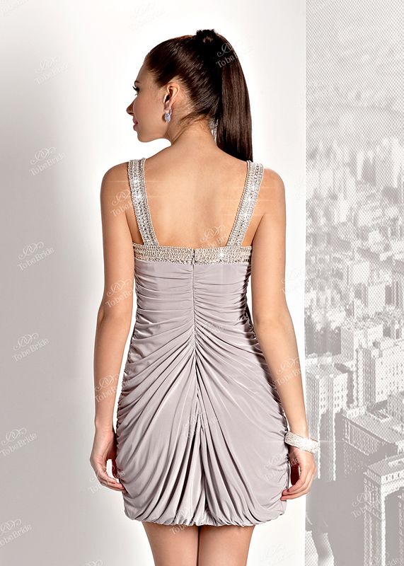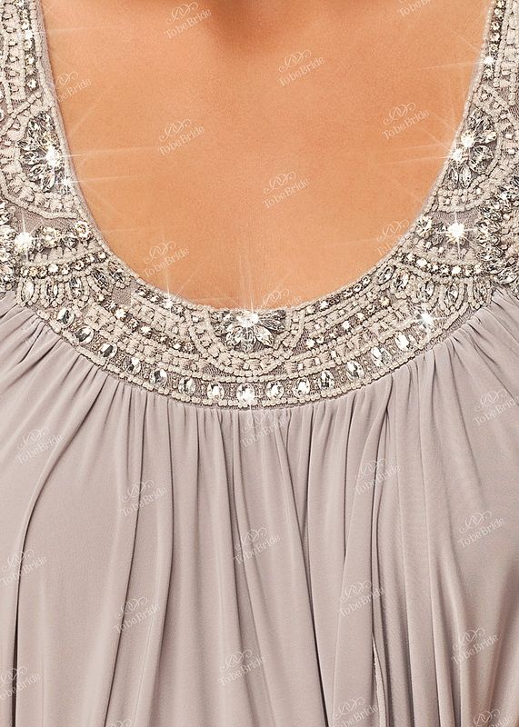 Уникальная интерпретация фасона «баллон» в образе вечернего платья создает неординарный и эффектный изысканный образ. Мягкий и эластичный джерси, собранный мелкими складками на вороте, струится элегантными «волнами» по всей длине платья, что придает силуэту эффект изящной драпировки. Восхищения заслуживает отделка бретелей и ворота платья, которые представляют собой изящные декоративные элементы, искусно украшенные вышивкой стразами, бисером и паетками. Элегантный пастельный нежно-серый тон платья придает особую утонченную женственность этой роскошной модели.