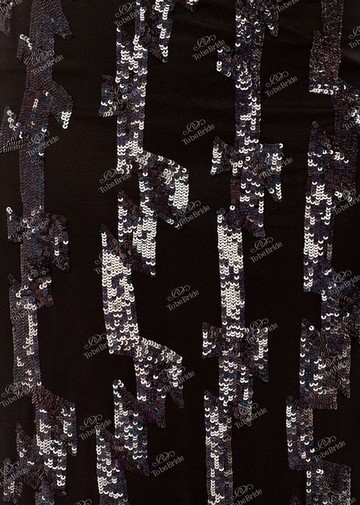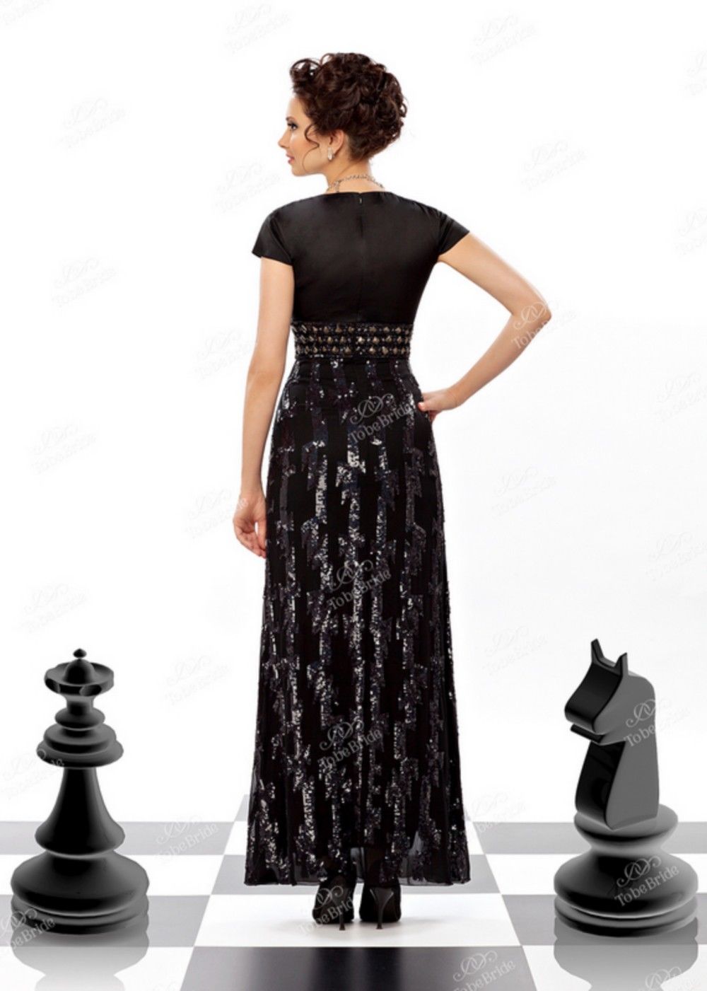 Юбка прямая, немного свободная. Длина платья – по щиколотку. Верхний слой юбки – лёгкая, «летящая» ткань, украшенная узорами из пайеток. Платье отлично смотрится на девушках с любым типом фигуры. Классический вечерний наряд, который во все времена будет смотреться красиво.