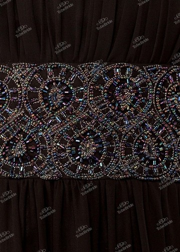 Широкие бретели, как и полоса на лифе, так же украшены вышивками из бисера. По линии талии так же проходит плотная широкая вставка из бисерных украшений.