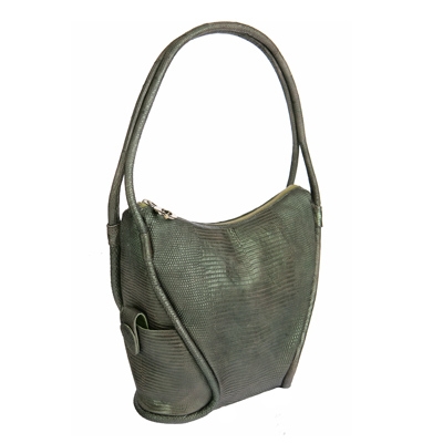 Привлекает внимание интересная интерпретация коротких тонких ручек, которые продолжаются в виде диагональных боковых кантов, между которыми прячется декоративный карманчик с красивой застежкой-замочком.