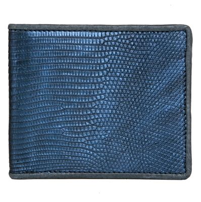 Интересная фактура натуральной кожи ящерицы и глубокий перламутровый темно-синий оттенок вместе производят удивительно красивое сочетание, а классическое решение внутреннего пространства с отделениями для купюр и кредитных карт позволяют использовать данную модель не только в декоративных целях.