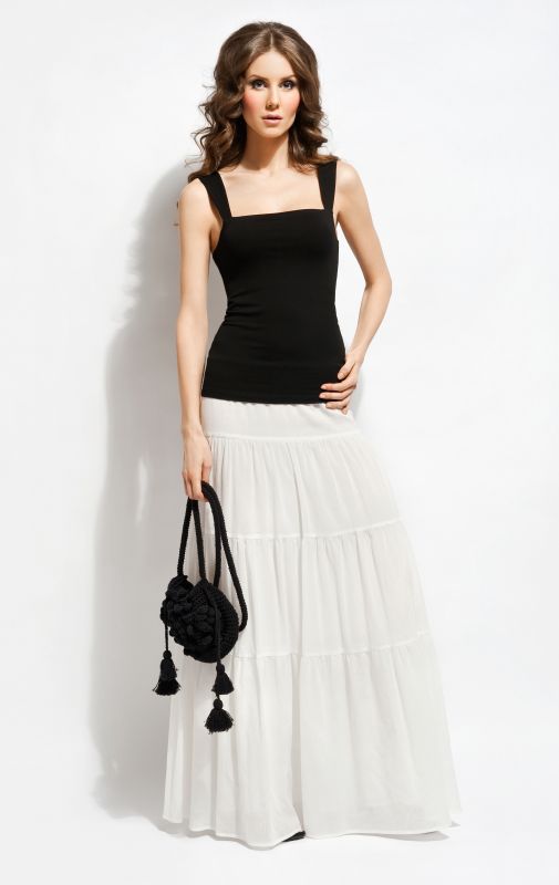 Вы кажетесь гораздо стройнее в легкой шикарной белой юбке. Она длинная, закрывает Ваши шикарные ножки, но такая закрытость только возбуждает интерес противоположного пола. Юбка облегает Ваши привлекательные бедра, которые покачиваются при ходьбе. Нижняя расклешенная часть ослепительно белой юбки развевается и создает впечатление легкого облачка, которое проплывает бесшумно и завораживает взгляды.
