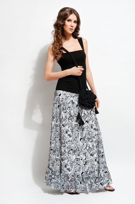 Завораживающий бархатный рисунок, легкая ниспадающая ткань, длина макси – все это о прелестной юбке, которой пока нет в Вашем гардеробе, но она там просто необходима!