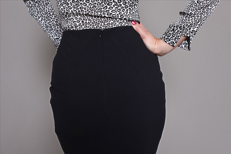 Длина – выше линии колен, талия завышенная. Юбка цепляет своей простотой и строгостью. Никакой вычурности и украшений. Строго и со вкусом. Отличный вариант для деловых девушек и женщин, которые соблюдают строгий дресс-код. Сзади имеется потайная молния и две красивые выточки.