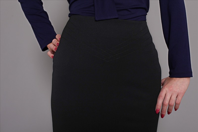 Юбка выполнена из плотной чёрной ткани, которая красиво переливается в свете ламп и солнечных лучей. Благодаря наличию разреза сзади, юбка смотрится очень интересно и сексуально.