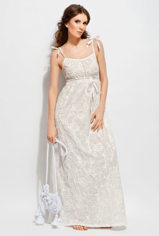 Великолепная модель сарафана из хлопчатобумажной ткани бросается в глаза белоснежной чистотой и роскошным белым шитьем.