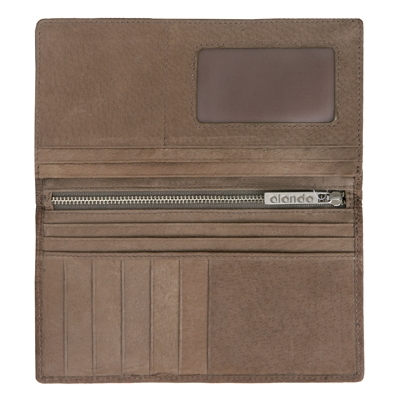 Портмоне имеет стандартный набор из 3-х отделений, кармана на молнии и отделений для визиток и кредитных карт.