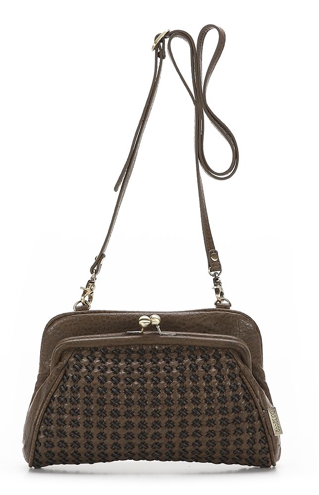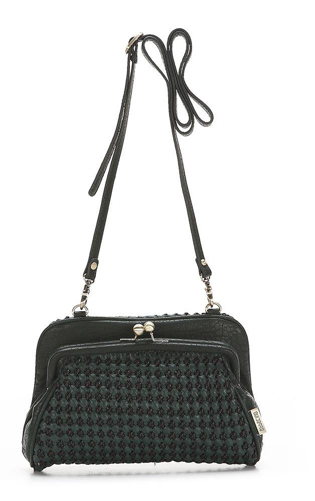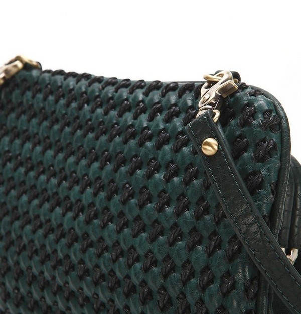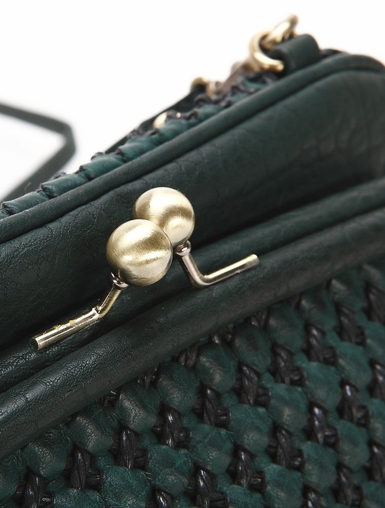Благодаря двухцветном лоскуткам, которые замысловато переплетены между собой, сумка привлекает внимание и очень эффектно смотрится. Ещё одним достоинством этого аксессуара является непривычная форма сумки. С внешней стороны она полностью выполнена из плетения, а с внутренней стороны, имеется небольшая металлическая застёжка «Пцелуйчик». Внутренняя часть сумки так же украшена плетением.