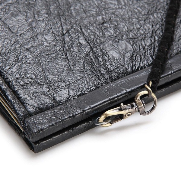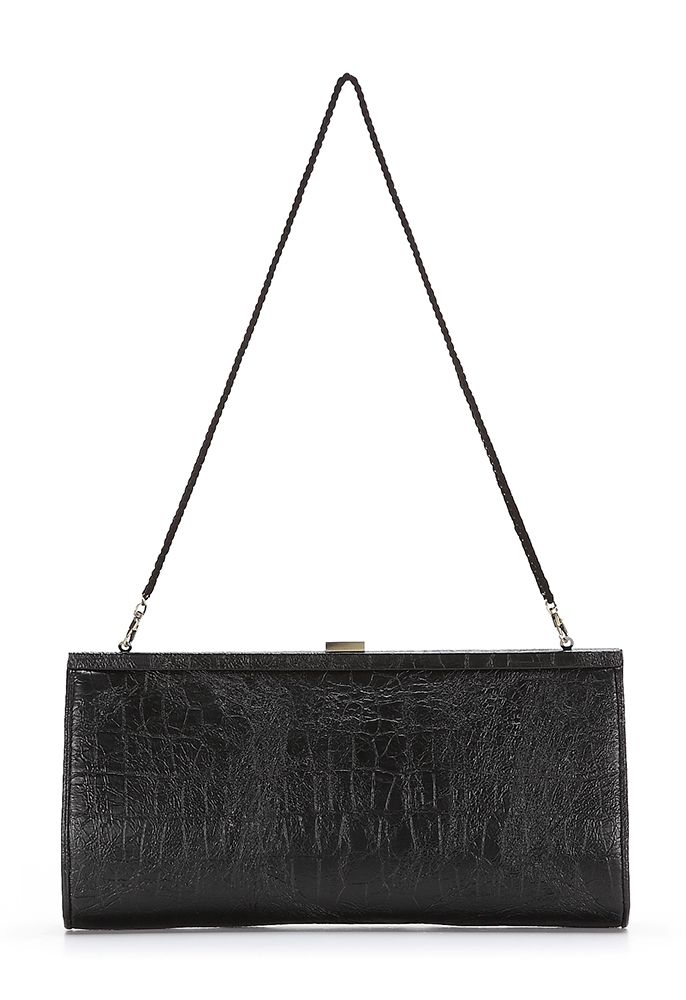 Чёрный строгий клтач, выполненный в стиле ретро, станет идеальным дополнением к любому вечернему наряду.