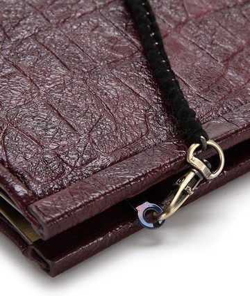 Клатч застегивается на металлическую застёжку. Имеется длинный тонкий ремешок, который с лёгкостью пристёгивается. Украшен гравюрой материала Коко, внутренняя подкладка отличается наличием рисунка Пейсли.