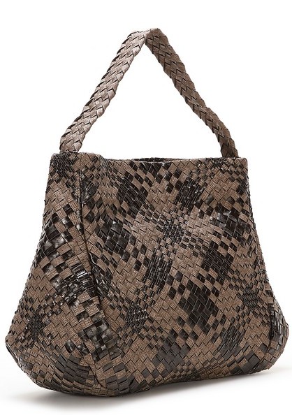 Название сумки говорит само за себя. Уникальная трапециевидная форма сумка позволяет её сделать максимально вместительной и объемной. Благодаря маленьким лоскуткам кожи, которые замысловато переплетены друг между другом и образуют крупные цветные квадраты, сумка смотрится очень стильно и модно.