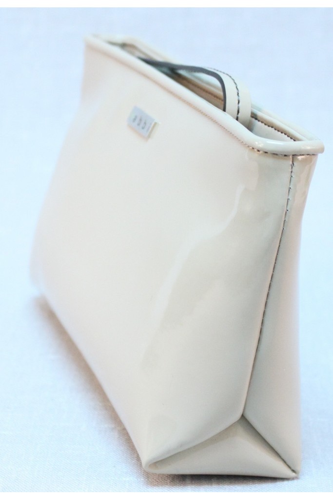 Клатч застёгивается на металлическую молнию. Внутри имеет два отделения и несколько мини-кармашков. Благодаря имитации лака, он красиво переливается в лучах солнца. Небольшая металлическая вставка с эмблемой марки, придаёт этой модели пикантности. Этот клатч способен гармонично вписаться практически в любой летний наряд.