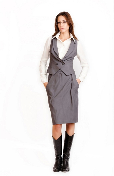Юбку и жилет (на фото), идеально подходящие к блузке, Вы можете найти в этой же коллекции Лады Калининой.