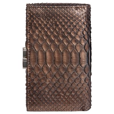 Удобный, практичный и элегантный, необходим каждой девушке. Красивая текстура натуральной кожи питона в бронзовом оттенке не только выглядит изумительно, но еще и надежна и износоустойчива. Стильный и вместительный.
