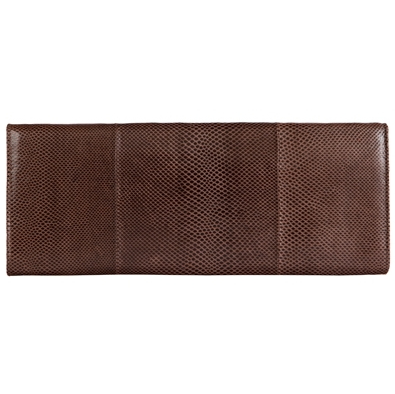 Модель выполнена из натуральной кожи песчаной змеи, закрывается оригинальным клапаном на магните, имеет одно отделение и дополнительный карман на металлической молнии. Подкладка из свиной кожи.