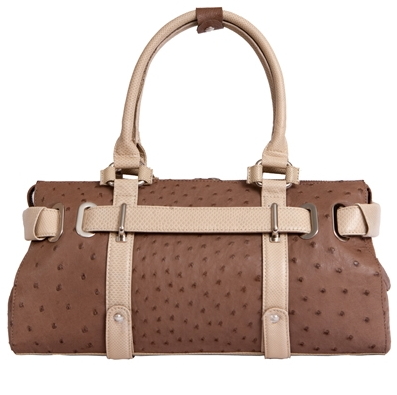 Сумочка выполнена из кожи страуса с отделкой из натуральной кожи песчаной змеи. Модель имеет удобные ручки, внутренняя подкладка - из свиной кожи.