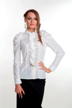 Красивая и нарядная блуза, украшенная многочисленными рюшами и складками.