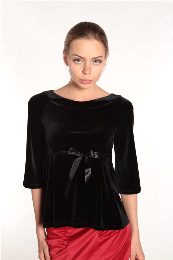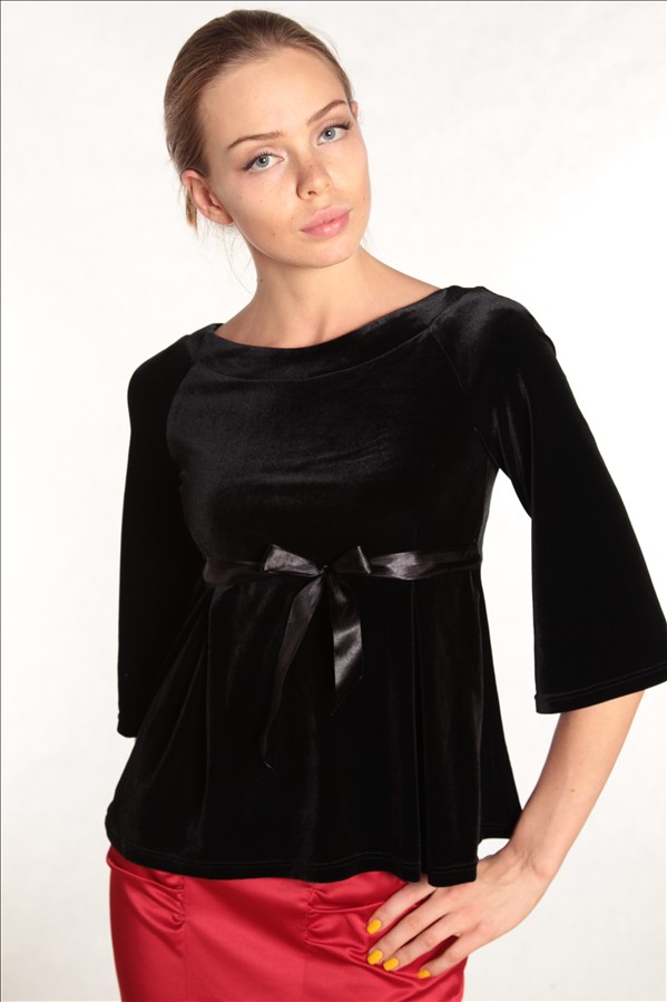 Красивая нарядная вельветовая блуза обладает уникальным фасоном и отлично смотрится на девушках с любым типом фигуры.