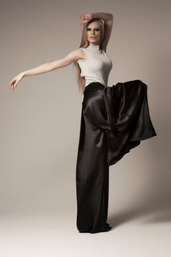 Посадка по линии талии, длина в пол и расширяющийся книзу силуэт сделают Ваши ножки еще длиннее.