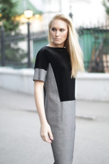 С виду простое, но на самом деле – необыкновенное стильное платье, выполнено в серо-чёрной цветовой гамме.