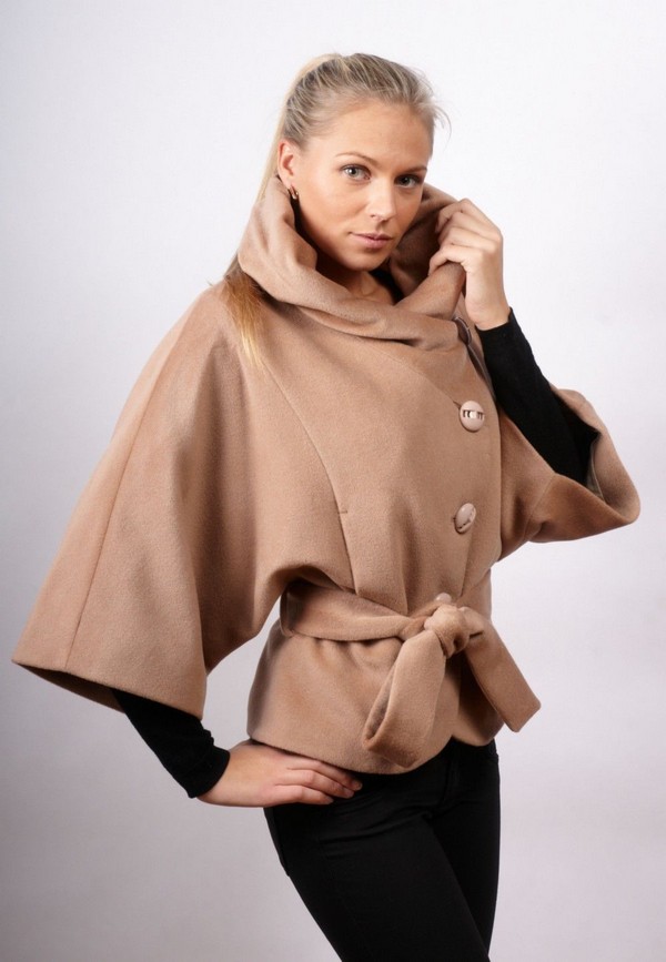 Пальто отличается своим необыкновенным фасоном. Воротник широкий, многослойный. Застёгивается пальто по косой боковой линии на несколько крупных пуговиц. Рукава двухслойные – верхний слой - широкий рукав три четверти. Нижний - прилегающие плотные чёрные рукава.