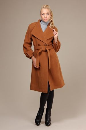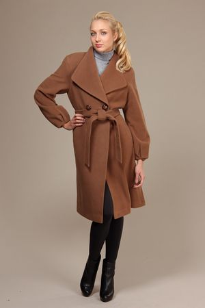 Пальто завязывается на пояс, что делает вас визуально стройнее. Пальто немного приталенное. Рукава прямые, свободные. У основания имеют форму фонарика. Красивая и стильная модель!