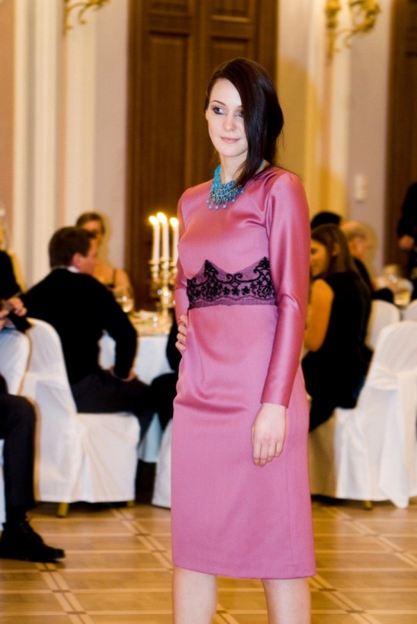 Вырез горловины – полукруг. Можно использовать бижутерию – она только подчеркнут всю прелесть и изысканность этого наряда.