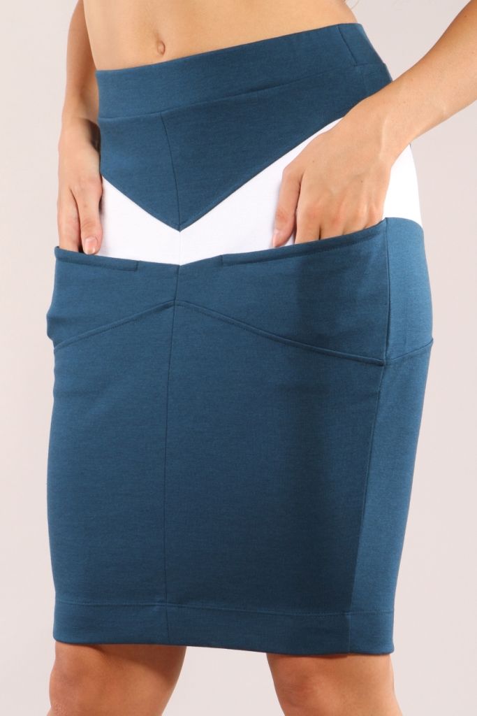 Стильная яркая юбка, выполненная из двух типов ткани, красиво смотрится на стройных молодых девушках, которые привыкли всегда быть в движении.