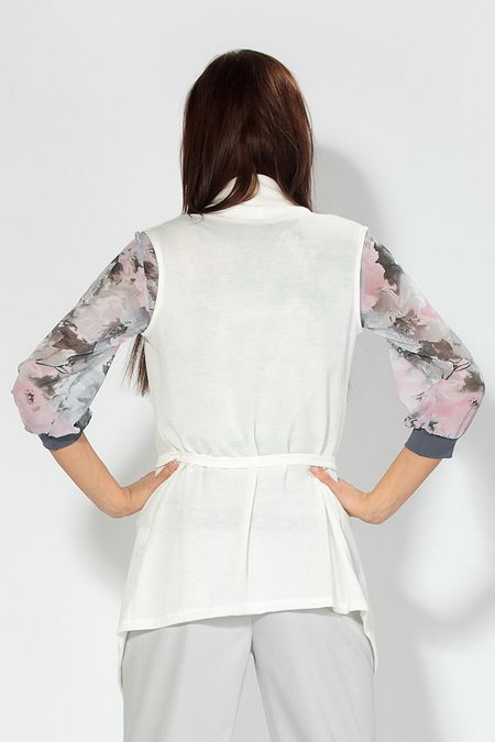 Потрясающий белоснежный жакет без рукавов не оставит равнодушным ни одно женское сердце. Оригинальный покрой поразит любое воображение. Белоснежный нарядный цвет, нарядные фалды, тоненький поясок - сразу же создается атмосфера праздника и хорошего настроения.