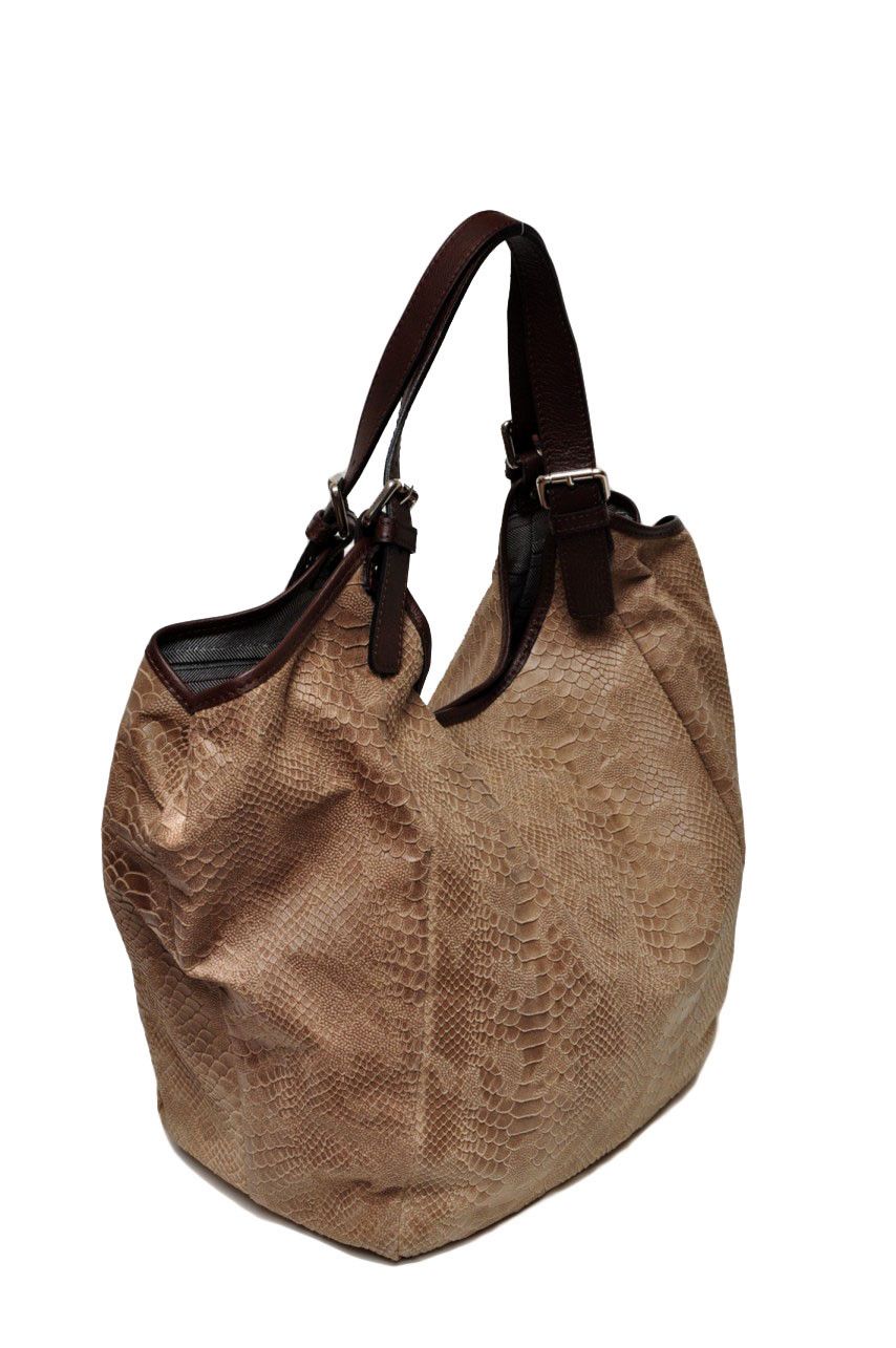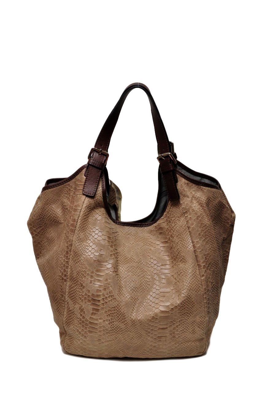 Просторная форма делает эту сумку очень вместительной несмотря на сравнительно небольшие размеры. Красивыая выделка натуральной кожи под фактуру змеи смотрится изысканно и сдержанно, что позволяет комбинировать эту сумку с одеждой в любом стиле: повседневном, спортивном и даже деловом. Особое очарование придают контрастные ручки.