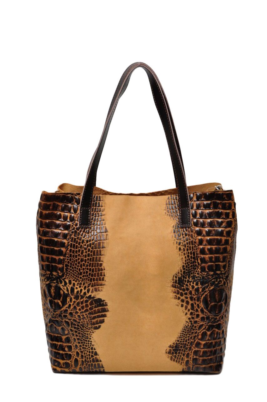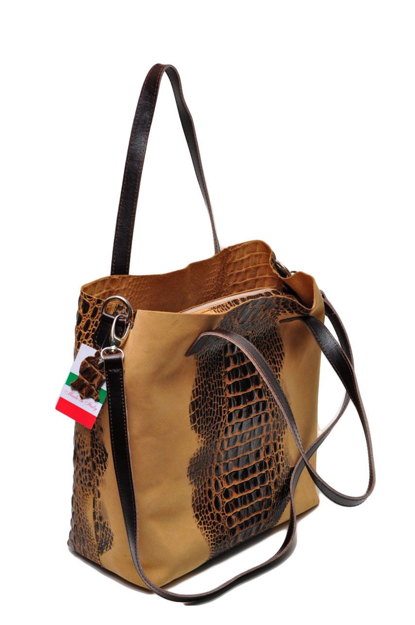 Сумка выполнена в классической прямоугольной форме из высококачественной натуральной кожи. Лаконичные прямые линии служат прекрасным фоном для необычной расцветки - темный узор под кожу рептилии на светлом фоне - сумка привлекает внимание и запоминается.