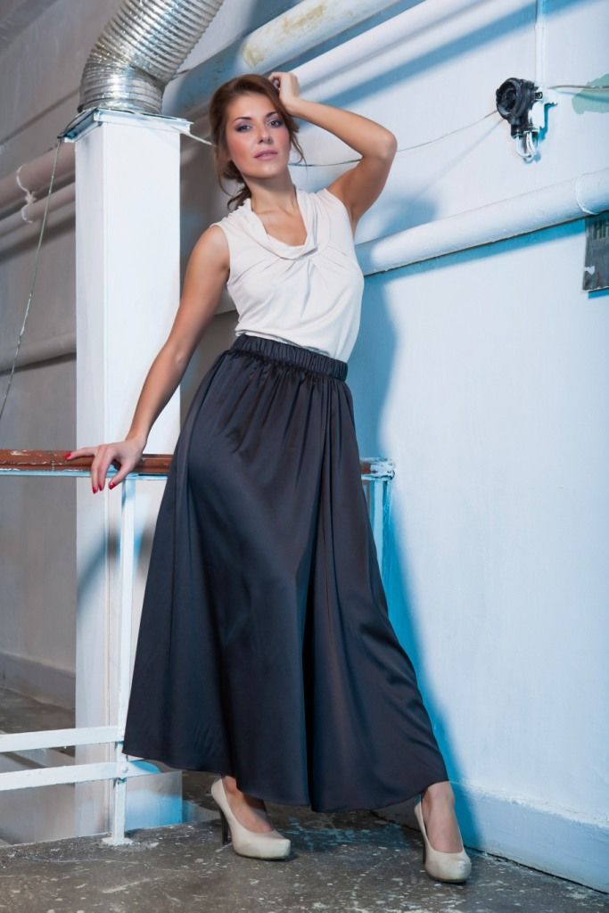 Отличительная особенность данной юбки – её длина и покрой. Юбка – в пол, что сейчас является одной из самых модных тенденций сезона. Сверху имеется неширокая резинка, которая позволяет прочно фиксировать юбку на бёдрах. Основное полотнище достаточно широкое, поэтому при носке юбка словно переливается – на ней образуются волнообразные хаотичные складки, придающие ей пикантности, а вам – грации.