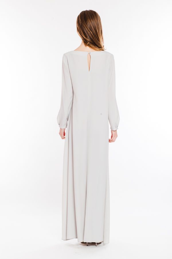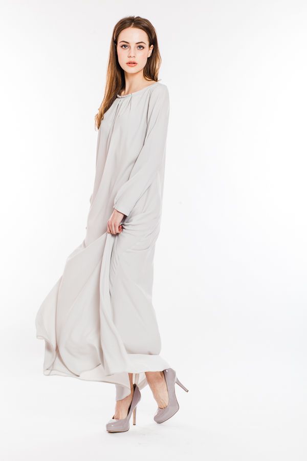 Это платье закрывает все, что только можно и именно это является его главной изюминкой - провокационное сочетание посыла к целомудренности и свободного покроя и летящего материала, готового в любой момент приоткрыть стройные ножки, производит неизгладимое впечатление, мгновенно привлекая внимание и надолго оставаясь в памяти как образ эфемерного прекрасного виденья...