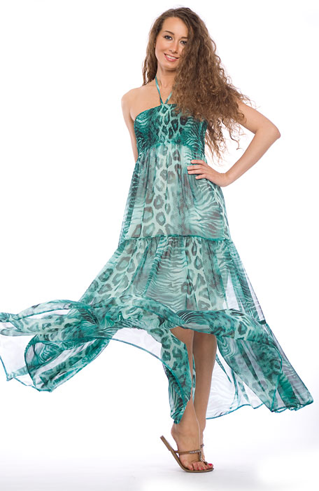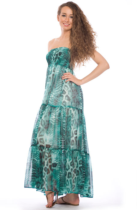 Длинный шифоновый сарафан цвета морской волны, сделает вас самой привлекательной и обворожительной.
