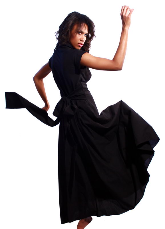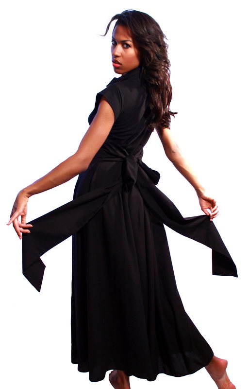 Отрезной лиф на кокетке красиво выделяет грудь, интригующе закрытую высоким вырезом горловины с мягким воротником. Высокая линия талии, переходящая в длинную широкую юбку, подчеркивает вашу стройность, зрительно удлиняет силуэт и придает ему мягкость волнами ниспадающего легкого материала.