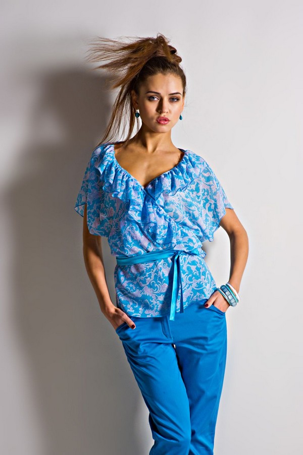 Длина брюк – ниже щиколотки. Они отлично сочетаются с разнообразными фасонами блуз, а так же под обувь на высоком каблуке. Однако если правильно подобрать верх, эти брюки можно носить и под балетки или босоножки на низком ходу.