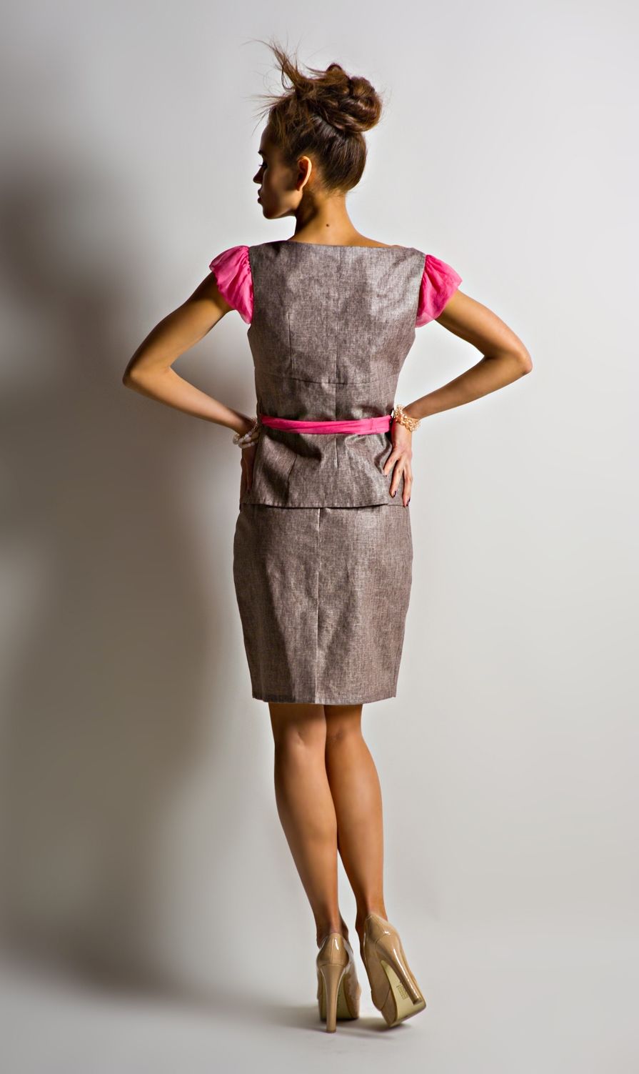 Стильная юбка цвета кофе с молоком, созданная из натурального льна, отличается своим деловым стилем вкупе с некой кокетливостью.