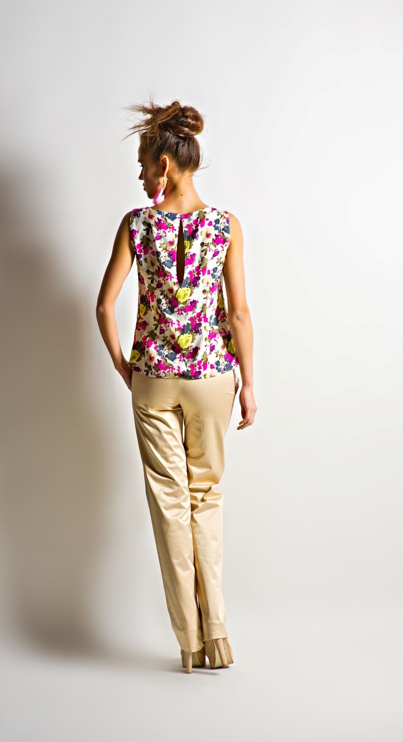 Топ отлично сочетается с разнообразными моделями брюк и юбок. В нём можно пойти как в офис, так и на прогулку.