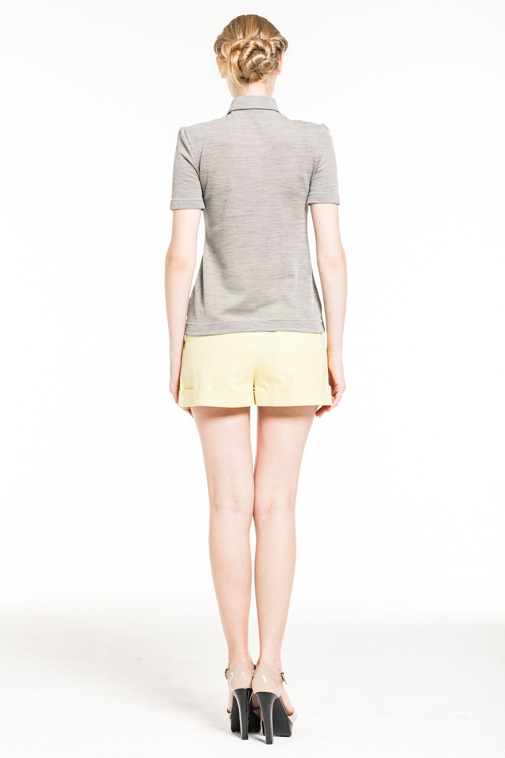 Футболка приталенного покроя, с короткими рукавами. Привлекает внимание оригинальное оформление ворота. Изюминка модели - высокая планка без пуговиц, которая обеспечивает сексуальный глубокий вырез горловины.