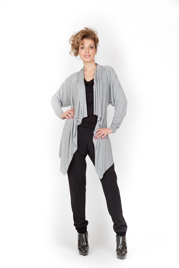 Данная модель имеет достаточно необыкновенный покрой. Верхняя часть брюк очень свободна. Посредине, от самого пояска, по штанинам идут аккуратные стрелки. По бокам спереди имеются небольшие карманы.