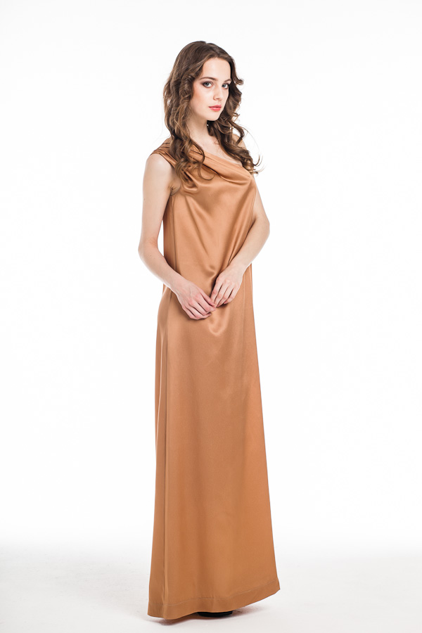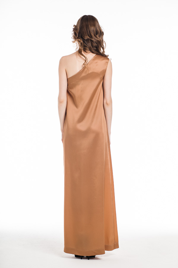 Прямой силуэт, актуальный оттенок, лаконичная форма, мягкая драпировка и легкий налет античности, который достигается благодаря покрою на одно плечо - это платье станет настоящим хитом вашего летнего гардероба!