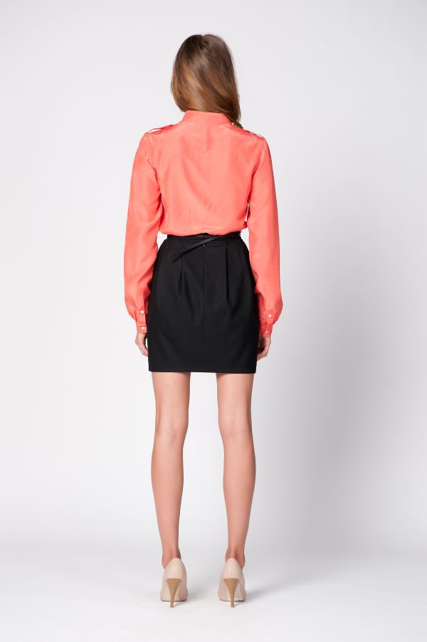 Юбка короткая, однако особый покрой и нейтральный оттенок придают ей элегантный и сдержанный вид, что позволяет использовать данную модель и в качестве детали делового костюма. Приталенный, но не узкий силуэт очень удобен. Изюминка юбки - глубокие вертикальные складки, которые не только обеспечивают идеальную посадку по фигуре, но и придают образу глубину, рельефность и динамику.