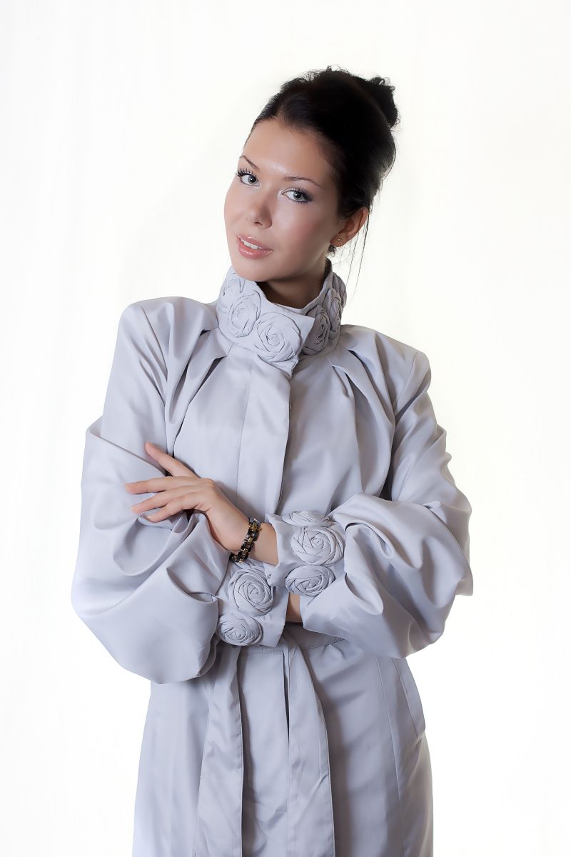 Что это - плащ или романтическое коктейльное платье? Расширенные приспущенные манжеты рукавов, приталенный покрой с волнистым подолом, необычное прочтение пояса и богатый декор воротника-стойки и манжетов - эта модель достойна того восхищения, которое она вызывает! Ничего лишнего, все детали четко выверены и професиионально выполнены, благодаря чему этот плащ достоин занять особое место в Вашем гардеробе.