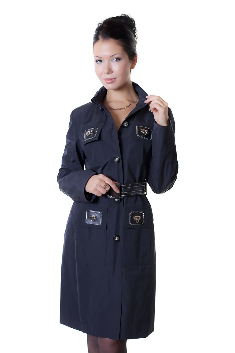 Плащ прямого приталенного покроя, актуальной миди длины. Привлекают внимание небольшой воротник-стойка и оригинальные детали, вызывающие в памяти стиль "милитари" и в то же время более женственные и мягкие. Талию подчеркивает широкий стильный пояс.