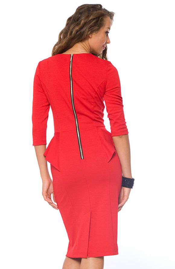 Эффектное платье классического прямого кроя, которому особый темперамент придает его яркий цвет. Прекрасный выбор для торжественного званого вечера, респектабельной деловой встречи, офисного костюма, а также повседневная модель, в которой Вы всегда будете выглядеть стильно на все «100». Элегантный фасон платья позволит бесконечно фантазировать над сочетанием этой модели с различными аксессуарами, ну а яркой деталью его строгого классического фасона является эффектная ассиметричная баска, воланы которой вшиты по бокам платья.
