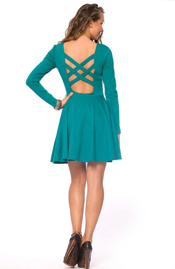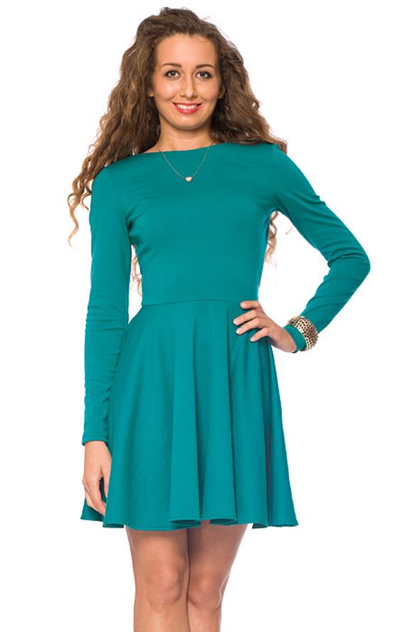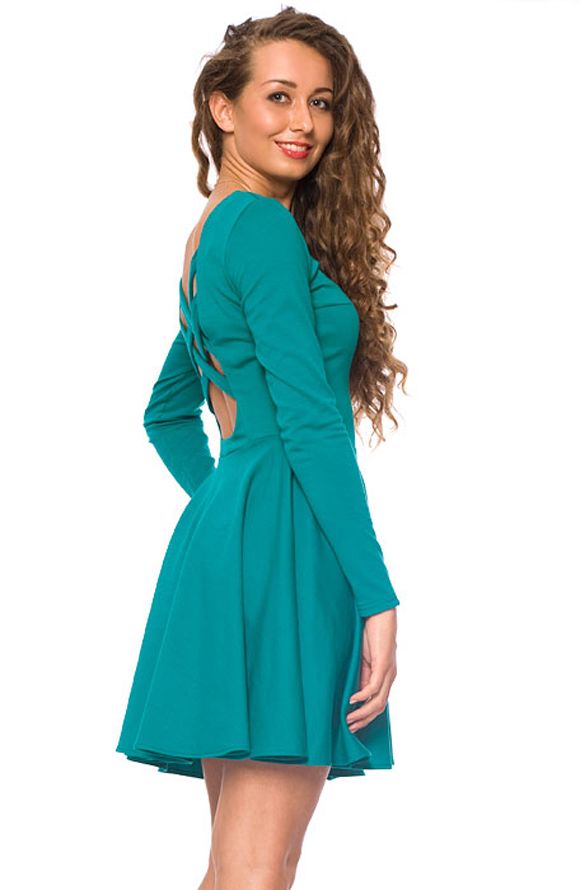 Очаровательное платье в стиле «бэйби-долл» с расклешенной юбкой обладает невероятно темпераментным и ярким характером. Облегающий силуэт верха подчеркивает грацию и стан фигуры, а отрезная по талии юбка придает воздушность и восхитительную женственность всему образу платья. Эта классическая модель отличается яркой идеей фасона – эффектным глубоким вырезом на спине с декоративным переплетением из нескольких лямок. Это изящное платье глубокого бирюзового цвета будет идеальным выбором для самого эффектного выхода. Такой наряд не останется незамеченным и подчеркнет индивидуальность и экспрессию Вашего стиля.