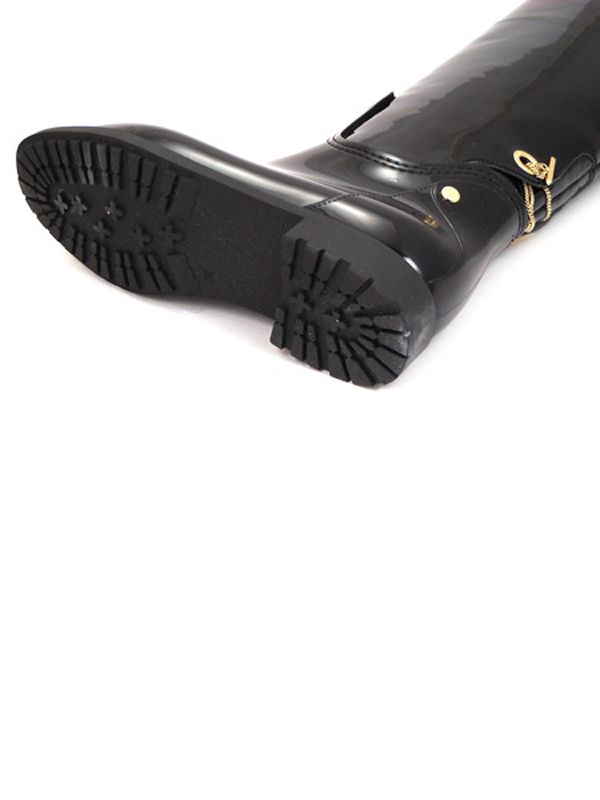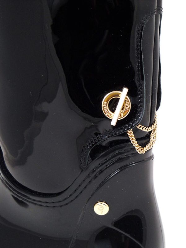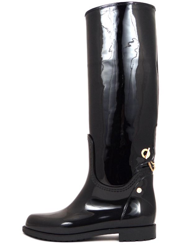 Изящная модель черного цвета выполнена в классическом фасоне «английский сапог», особый шарм которому придает декоративный аксессуар из цепочек (съемный).