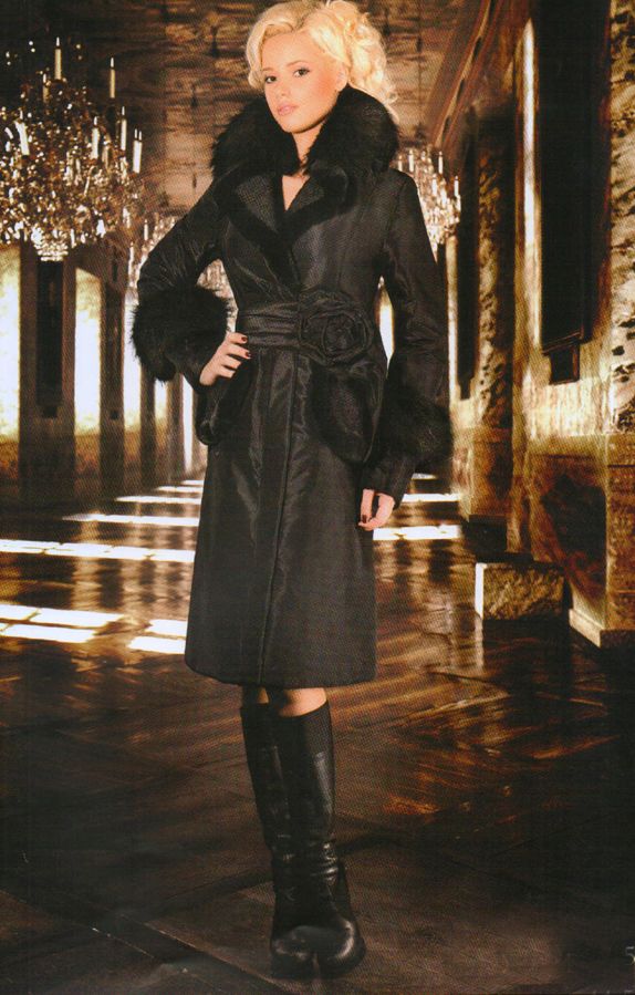 Изысканное пальто классического прямого силуэта c оригинальным поясом, декорированным изящным цветком. Особый шарм модели придает эффектная отделка натуральным мехом и декор эксклюзивной тканью "шанель" воротника и карманов. Пальто "Luna" - модный и стильный выбор сезона осень-зима 2012-2013. Это уютное пальто не только окутает теплом в прохладный осенний день, но и подчеркнет эффектным стилем шарм и изысканность вкуса своей обладательницы.