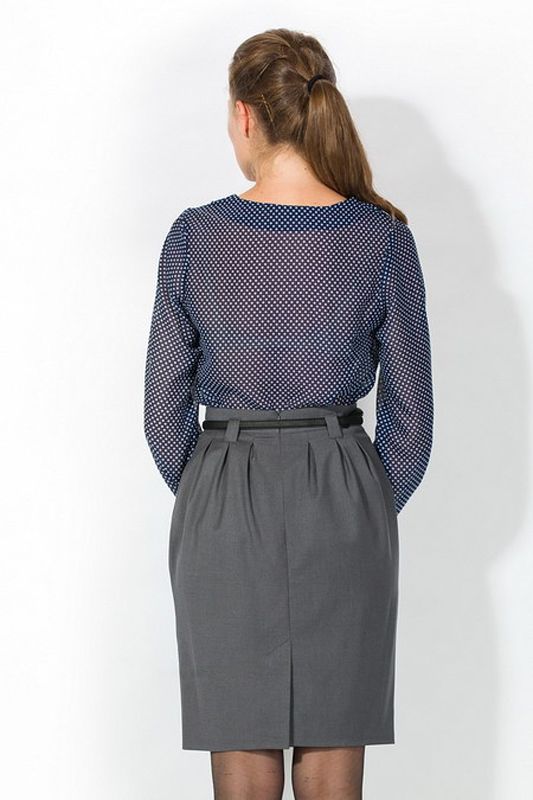 Модель удивительно «многоречива», и может, создать удачный фон для костюма, но также и выступить в ансамбле самостоятельной моделью. Блуза сочетается с юбками и брюками множества фасонов.